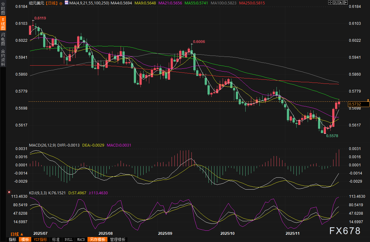 新西兰联储周三意外降息,但会议中讨论过按兵不动,并暗示宽松周期很可能结束,这反而提振了纽元,周五纽元兑美元一度涨至三周高位0.5743,收报0.5732,周线涨幅2.17%,为4月中旬以来最大周线涨幅。