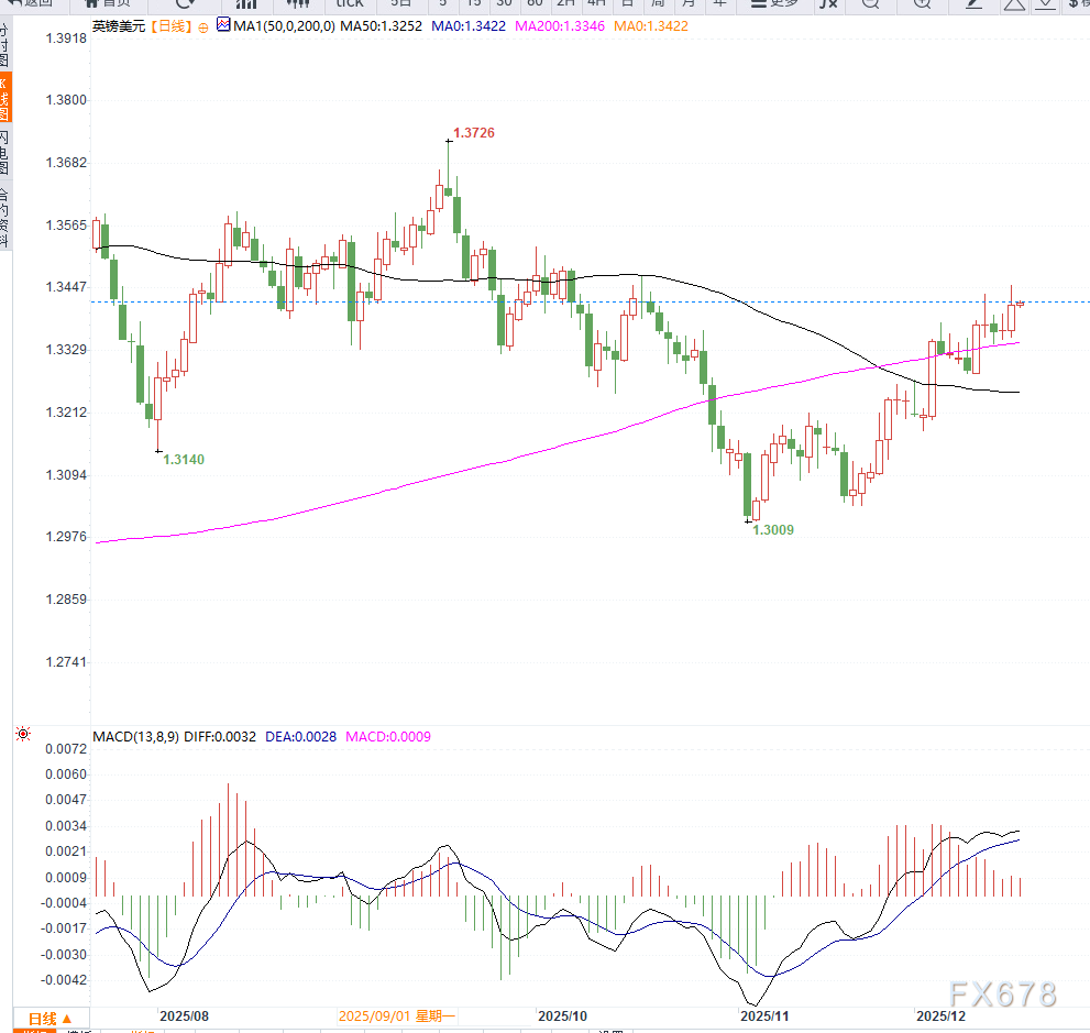 根据CME FedWatch工具显示,联邦基金期货定价显示,市场认为美联储在明年1月会议上维持利率不变的概率约为75.6%,较一周前明显上升。这一变化反映出美元在短期内仍具备一定支撑,也对英镑构成间接压力。