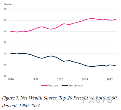 另一方面推动收入向资本端转移,高财富家庭通过利息收入与资产增值扩大优势,截至2024年,顶层20%家庭已掌握超过50%的可支配收入。