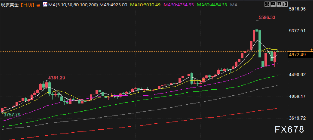 金价上周五反弹,周线上涨,主要得益于低吸买盘、美元小幅走软以及对美伊会谈的持续担忧。现货金上涨3.9%,报每盎司4954.92美元,上周累计上涨2%。美元指数下跌0.2%。伊朗方面表示,由阿曼斡旋的美伊核谈判取得“良好开端”并将持续推进。